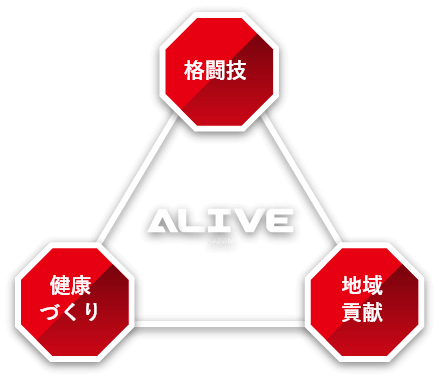 そして、プロ格闘技選手を育成してきた「運動・栄養・休養」のノウハウと知見は、格闘技をこえて、個人、企業、行政へと広く社会に還元することができます。これからもALIVEは、フィットネス・スポーツ・格闘技を通じて「日本を笑顔で元気で健康にする」事を理念とし、名古屋から世界へ挑戦し続けます。